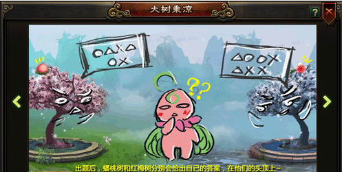 2、神将三国大树乘凉:每天12点30分到13点为活动时间。12点30分玩家点击大树乘凉活动图标可以进入大树乘凉活动场景。活动为答题活动总共有30道题目。题目出来后,玩家可以选择往左右2的任意一边来作为正确答案,答对后有丰富的经验、铜币、阅历、和精魄奖励。答错了也会有经验奖励。不会的题目玩家可以选择往人多的一边跑。正确率会高一点。。。
