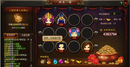 12、再来一箭:这个是看RP的东西了。。玩家每天可以在活动场景12宫格内任意选择一个NPC进行射击。具体如下图;