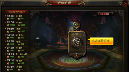 9、个人舌战;神将三国玩家每天可以舌战10次。奖励丰富的铜钱和阅历。每次5张牌,达到一种排列可以获得奖励。神将三国玩家可以免费换牌2次,大R们可以选择每次刷完美。这个是得铜钱最多的地方。