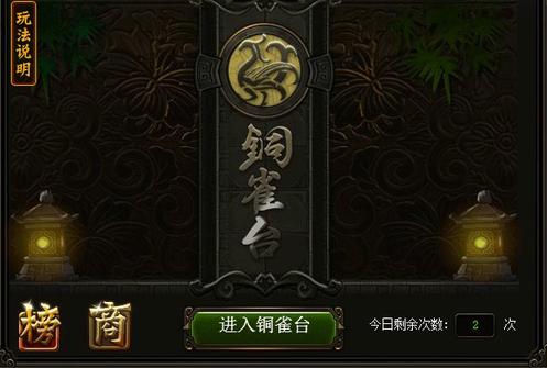 7、铜雀台:玩家全天可以参加。一次15分钟,可以获得积分在铜雀台商店总换东西,具体如上图