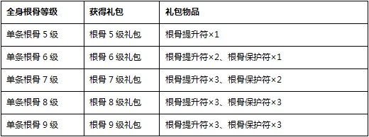 活动内容:活动期间,玩家提升根骨等级到一定等级,即可自动获得相应的全身根骨提升礼包。