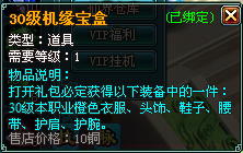 角色兑换功能,兑换角色30级紫色防具套装的道具。 |