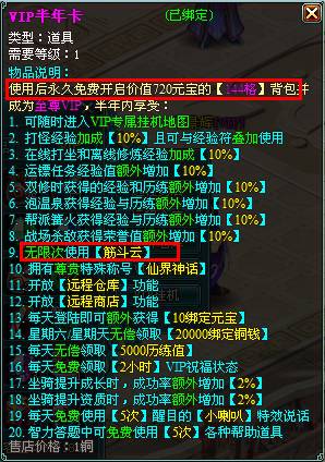 筋斗云*5,绑定铜钱*3000,绑定元宝*10 |