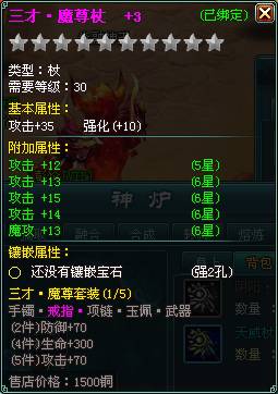 神炉强化功能使用,装备获得基础属性加成。 |