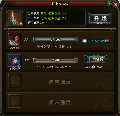 都城内除国王外的其他玩家唯一可以使用征兵处,对英雄进行招兵,且只有在都城内才能进行招兵,如果英雄麾下没有士兵,是无法出征的哦~
