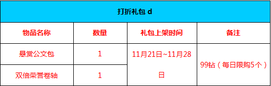 活动时间:11月21日00:00:00 ~11月28日23:59:59
