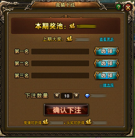 按下注比例分享总荣耀水晶,上限为投注钻石数的20倍,下限为投注钻石数的0.5倍(奖品均为荣耀水晶)。