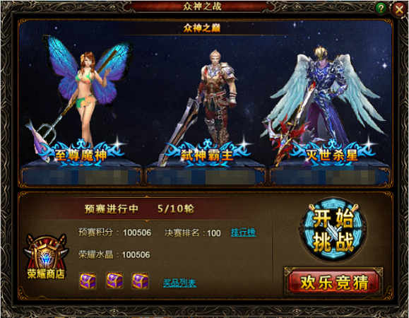 2、众神之战分为比赛(分预赛和决赛)、下注、荣耀商店三个部分。
