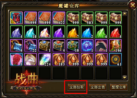 玩家在成功获得开启魔罐的奖励后,点击游戏中“魔罐仓库”可查看获得奖励内容, 再次点击“全部拾取”奖励物品就会自动进入玩家背包了,这个时候玩家就可以进入背包查看或使用了。