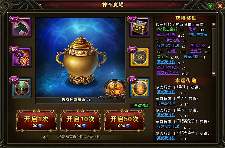 2. 活动结束后,未从魔罐仓库中提取的道具将通过邮件方式发送。