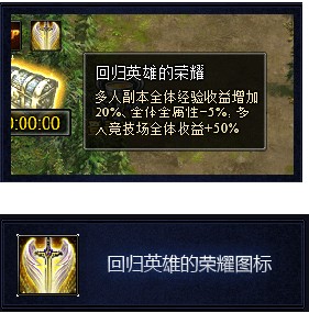 ( 1 ) 同时符合以下两个条件的玩家,上线即可获得增益buff “回归英雄的荣耀”;