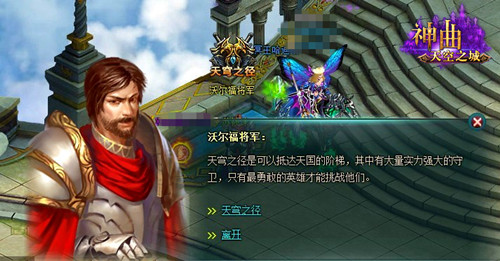全新推出的PVE单人闯关副本——“天穹之径”,位于天空之城地图,玩家只要找到NPC沃尔福将军,即可传送到天穹之径副本。在这里,玩家将遇到大批实力强大的守卫,只有最勇敢的英雄才能挑战他们,而只有战胜他们,才能看见通往天国的阶梯。