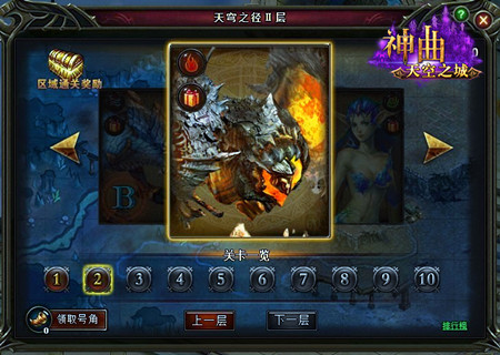 天穹之径作为闯关副本,不仅有不同的关卡,还有不同的挑战层数,只有通过了前一层副本,方能开启后面的关卡。每通关一个关卡,都能获得对应的奖励,同时完成一个层数的通关,还能获得区域通关奖励。