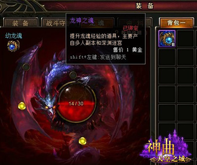 当玩家等级达到40级后完成相关任务可获得“龙蛋”,使用“龙神之魂”喂养并孵化龙蛋就可获得“龙魂”。