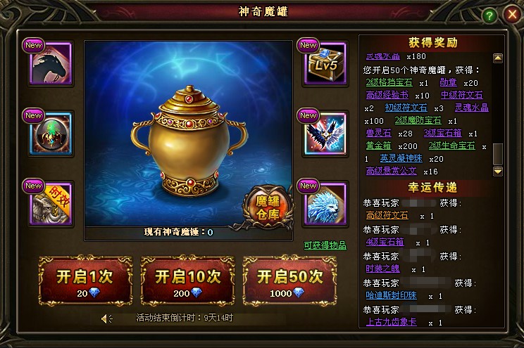 3. 温馨提示,本次魔罐的“上古九齿象”为限时坐骑,激活后有效时间为15天。