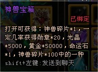 1、神兽宝箱开出物品均为绑定;