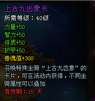 3. 温馨提示,本次魔罐的“上古九齿象”为限时坐骑,激活后有效时间为15天。