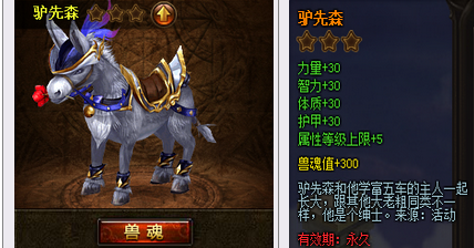 驴先森卡*1(属性*30) 兽灵石*50 |