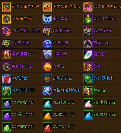 圣魂石*200,英灵装备强化包*20, 神的祝福*20 |