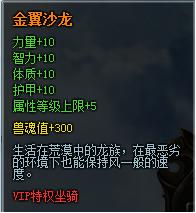 【活动内容】活动期间,开通VIP即可获得专属坐骑(等级达到16级开放坐骑系统)
