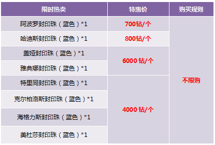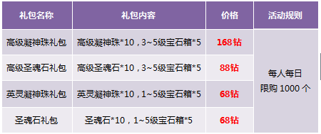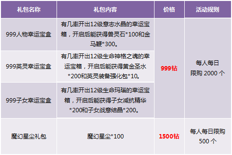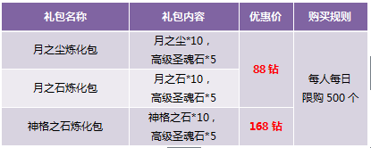 礼包仅在商城“限时热卖”处出售,道具仅限“钻石”购买。