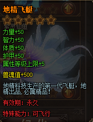 地精飞艇卡*1(国庆特殊坐骑,属性+50,可飞行) (兑换时间:10月4日0:00-23:59) |