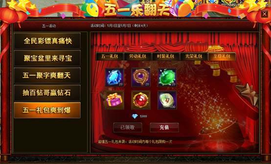 活动内容:五一活动限时礼包特卖,没有最划算,只有更划算!