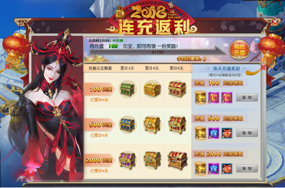 【活动内容】2018,元旦狂欢,为了庆祝跨年,活动期间,玩家充值指定金额即可获得充值大奖,累计充值天数与充值元宝数均达到对应的要求,即可领取累计充值奖励。大量绑元、玄武极御材料、斩魄刀礼包、海量装备道具、进阶道具等珍稀道具唾手可得!赶快加入把!