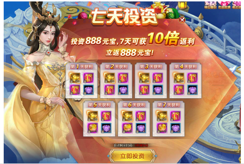 2. 购买投资计划的玩家可每日领取返利直至领取完毕活动结束