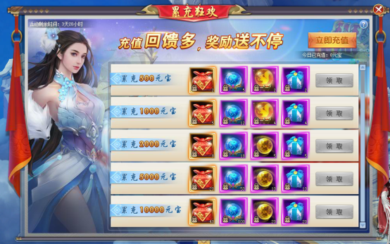 【活动内容】活动时间内,充值达到指定数额,即可获得丰厚的充值大礼一份。礼品内包含炼器石随机礼包、法器成长丹等精美道具,海量福利等你拿!
