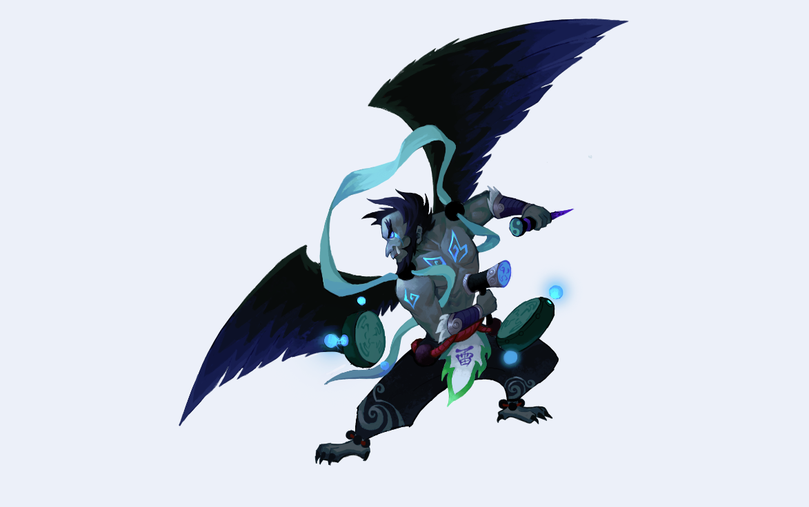 圣雷公:单体攻击,每次偷取目标较高比例的攻击与20气势加成至己方横排,并标记其为十字范围内敌方角色1回合内的攻击目标,