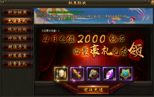 2. 活动期间内,每日充值达指定钻石数额,即可领取充值奖励,可原每日充值奖励叠加领取。