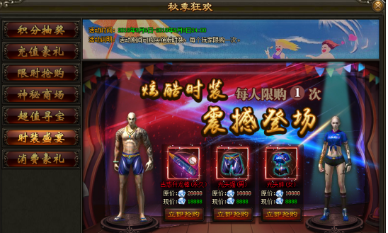 2. 活动期间内,玩家可购买绝版活动时装,每个玩家限购一次