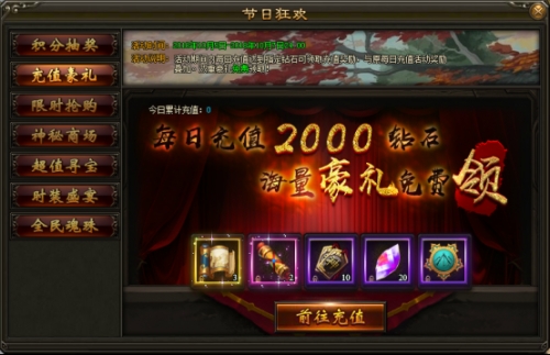 2.活动期间内,每日充值达指定钻石数额,即可领取充值奖励,可原每日充值奖励叠加领取。
