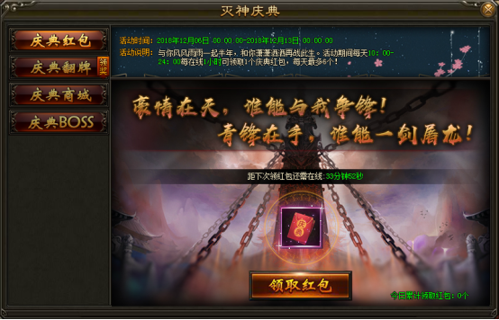 2. 活动期间内,每天10:00-24:00每在线1小时,可领取1个庆典红包,每人每日最多可领取6个
