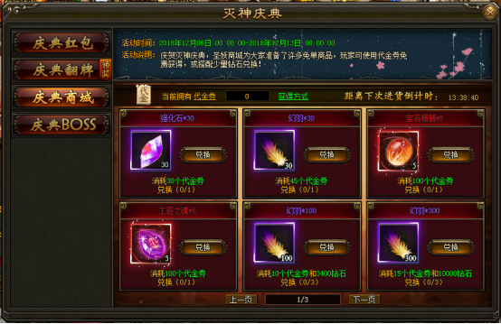 2. 活动期间内, 击杀各种boss可掉落[代金券],使用代金券可兑换道具。