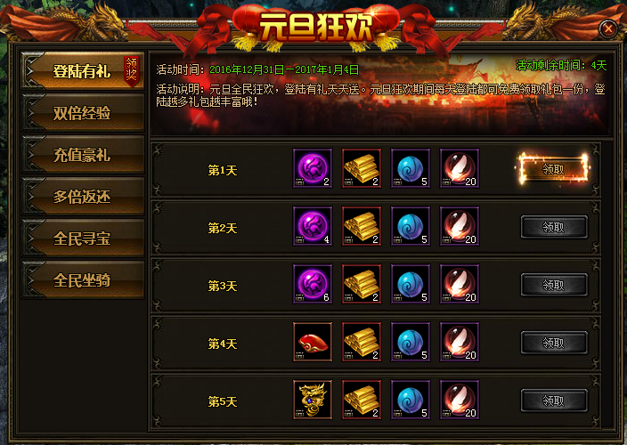 »î¶¯ËµÃ÷£ºÔªµ©È«Ãñ¿ñ»¶£¬“µÇ½ÓÐÀñ”ÌìÌìËÍ£¡Ê¥µ®¿ñ»¶ÆÚ¼äÿÌìµÇ½¶¼¿ÉÃâ·ÑÁìÈ¡Àñ°üÒ»·Ý£¬µÇ½Խ¶àÀñ°üÔ½·á¸»