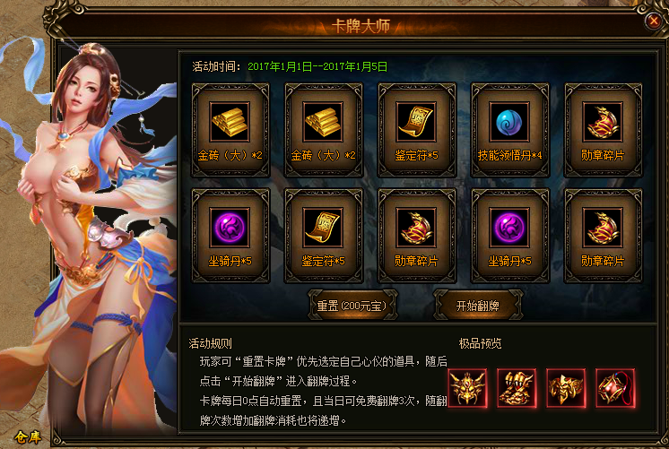 »î¶¯ËµÃ÷£º¿ÉÖØÖÿ¨ÅÆ£¬Ñ¡È¡ÐÄÒǵÀ¾ßËæºóµã»÷¿ªÊ¼·ÅƽøÐÐ·ÅÆ¹ý³Ì£¬¿¨ÅÆÃ¿ÈÕ0µãÖØÖÃÇÒÿÈÕÃâ·Ñ·ÅÆ3´Î£¬·ÅÆÏûºÄËæ·ÅÆ´ÎÊýµÝÔö