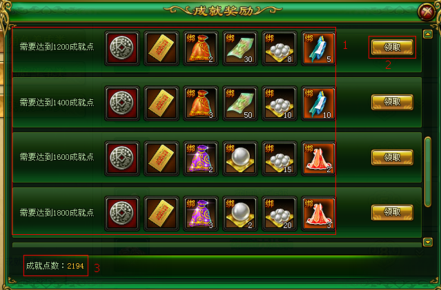 2. 领取成就奖励界面如图: