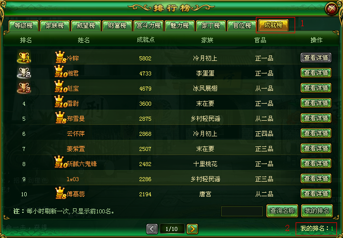 五.成就排行榜: