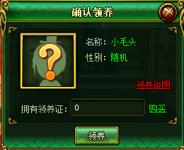 【领养子女】只有单身玩家才可进行领养,能且只能领养1个孩子,领养成功后,孩子将出现在府邸—子女室中(再次温馨提示,先行开通子女室哦!)。