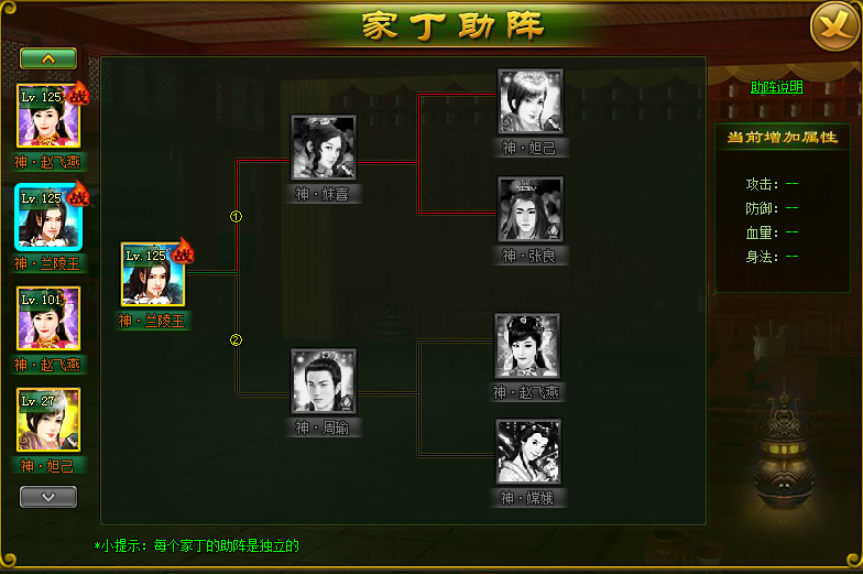 (3)每个家丁只能为一个家丁助阵,已上阵的家丁无法给其他家丁助阵;