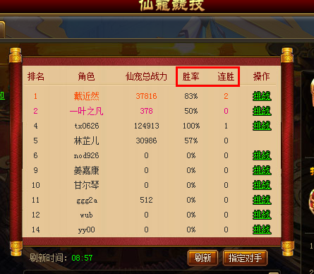 (1)添加了竞技胜率、连胜的信息统计,供众位修士评估自身实力