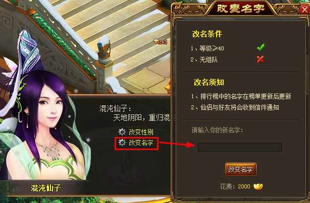 c. 每次改名消耗2000不绑定元宝