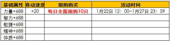 2、1月22日-1月26日,每天中午12:00开始,点击右上角 “跨服限购”即可参与抢购;