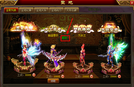 b. 大帝可在【圣地-圣职列表】界面点击“禅让”,在候选人(圣职官员或王族官员)中选择一位禅让帝位,若对方接受,则禅让成功