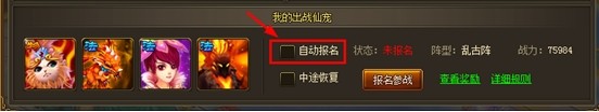 (1)在『仙宠乱斗』界面勾选后开启自动报名功能