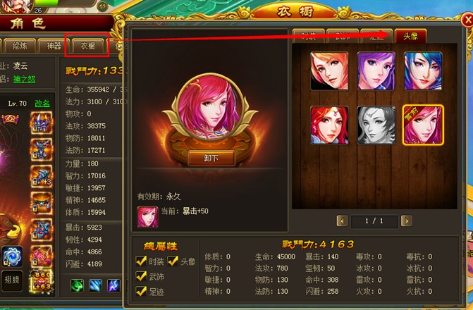(1)功能入口:『角色-衣橱』界面“头像”标签页