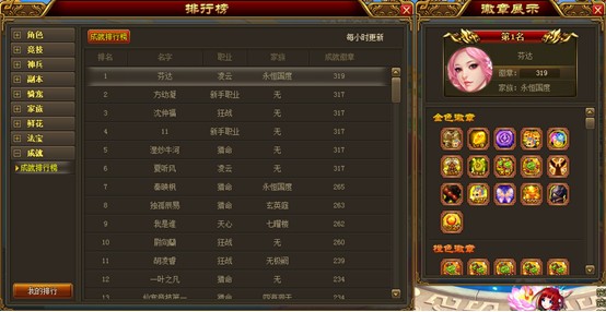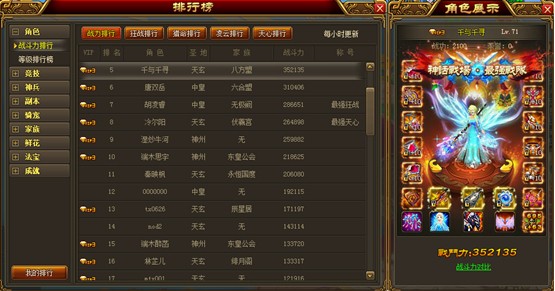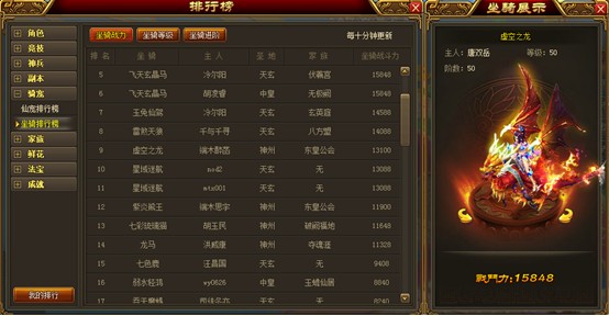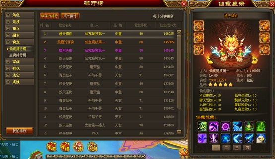 (3)部分排行榜右侧附加展示窗口,方便修士们更直观的查看相应信息
