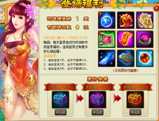 之后连续登录,每日均可翻牌3天,中断后将重新计算。